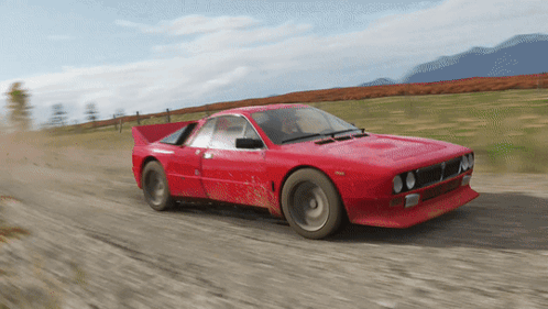 Experience the thrill of off-road rally driving with the iconic red Lancia 037 Stradale in Forza Horizon 4.