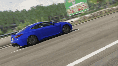 A sleek blue Lexus RC F sports car speeds through scenic roads in the popular racing game Forza Horizon 4.