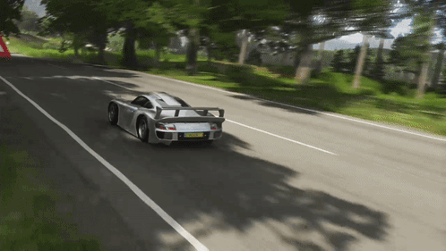Experience the iconic Porsche 911 GT1 Strassenversion in Forza Horizon 4, cruising on a scenic road.