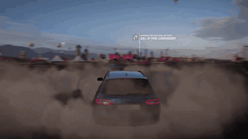 An Audi RS 4 Avant performs impressive drifts and donuts on a dusty dirt track in the video game Forza Horizon 5.