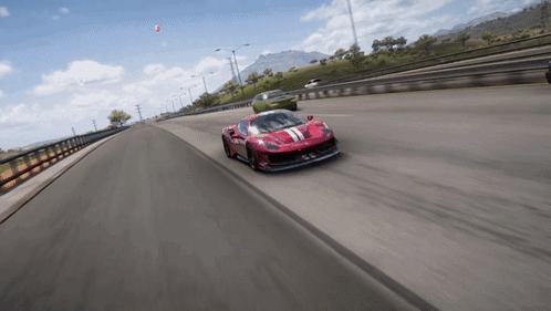 Experience a high-speed drive in the Ferrari 488 Pista through the scenic landscapes of Forza Horizon 5.