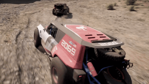 Ford Performance Bronco R off-road vehicle racing on a dirt track in Forza Horizon 5.