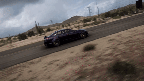 A purple HSV Gen F GTS drives and drifts on a desert road in Forza Horizon 5.