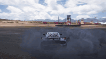 A Lamborghini Huracan Sto performs impressive drifts and burnouts in Forza Horizon 5.