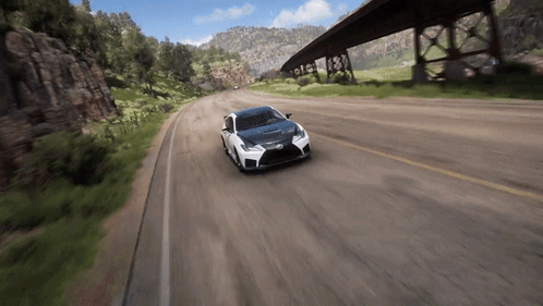 Experience the Lexus RC F Track Edition driving through scenic landscapes in Forza Horizon 5.