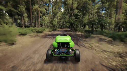 Experience thrilling offroad driving in a green Hot Wheels Rip Rod buggy through a lush forest in Forza Horizon 3.