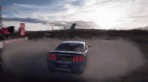 A blue Ford Shelby GT500 performs impressive drifts and burnouts in Forza Horizon 5, kicking up dust on the track.