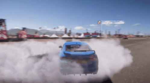 A blue Jaguar XFR-S performs impressive drifts and donuts, creating thick smoke in Forza Horizon 5.