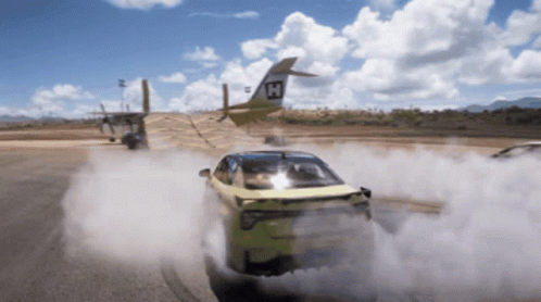 A yellow Lynk & Co 03+ performs impressive drifts and donuts in Forza Horizon 5.