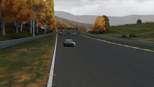 Experience the thrill of a BMW Z4 GTE racing on a scenic track in Forza Motorsport 7, surrounded by autumn trees.
