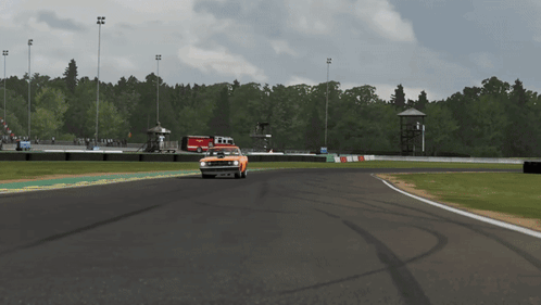 An orange Dodge Dart Hemi Super Stock racing on a track in Forza Motorsport 7.