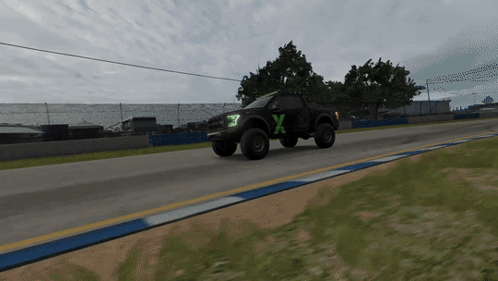 A black Ford F-150 Raptor Project Scorpio Edition truck races on a track in Forza Motorsport 7.