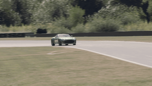 A green Aston Martin DBS Superleggera sports car drives on a race track in Forza Motorsport.