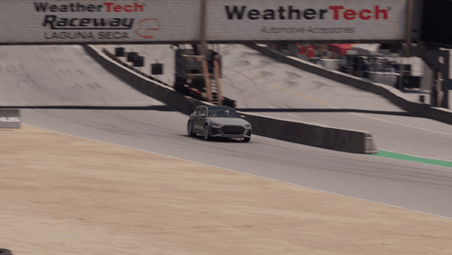 An Audi RS 6 Avant drives on a race track in Forza Motorsport, passing a WeatherTech sign.