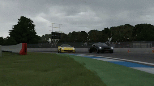 A yellow Chevrolet Corvette Z06 and a black sports car race on a track in Forza Motorsport.