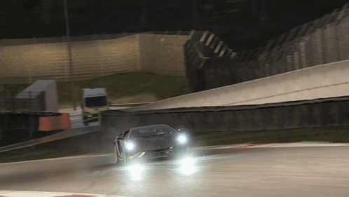 A black Lamborghini Sian FKP 37 races on a wet track at night in Forza Motorsport, headlights cutting through the dark.