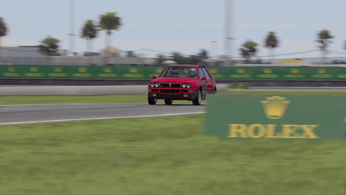 A red Lancia Delta HF Integrale Evo races on a track in Forza Motorsport, showcasing its classic design.