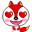 A cute cartoon fox emoticon with heart-shaped eyes, pink cheeks, and a sweet smile.