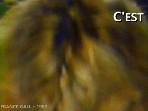France Gall in a close-up, with the phrase 'C'est Bon Que Tu Sois Là' (It's good that you are here) on screen.