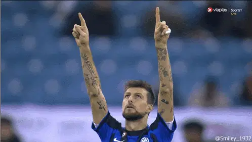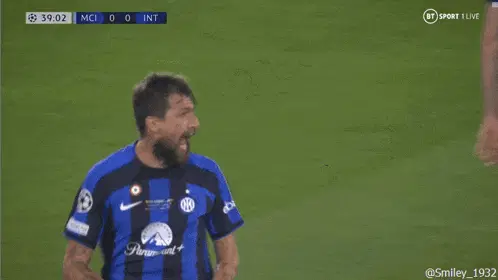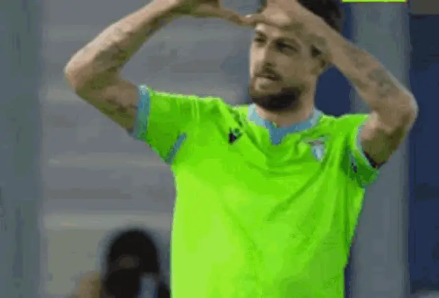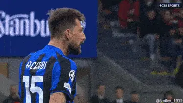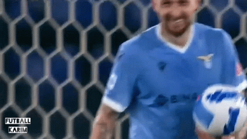 Francesco Acerbi, a player for Lazio, smiles on the field after a game.