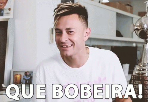 Fred Desimpedidos exclaims 'Que Bobeira!' with expressive gestures, a popular meme.