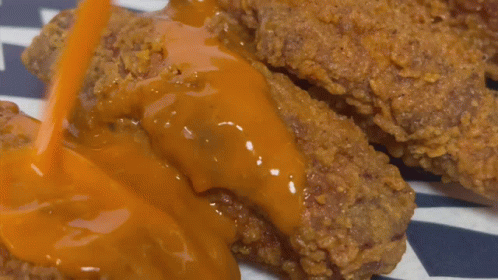 Crispy fried chicken wings are generously coated with a vibrant orange buffalo sauce, creating a mouth-watering visual.