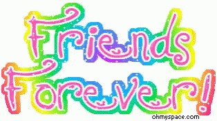 A vibrant animated sign with glitter effects displays the words 'Friends Forever Love'.