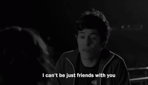 A man expresses his feelings, stating he can't be just friends, in a black and white scene.