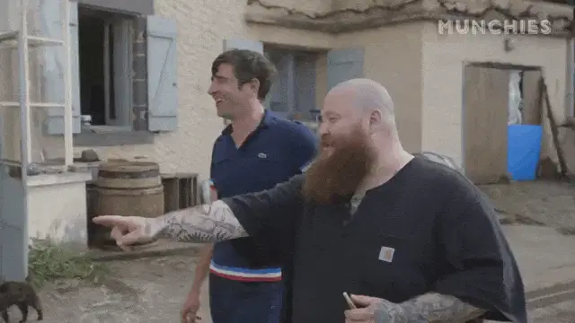 A man dramatically dives headfirst into a refrigerator for munchies, with the caption 'Munchies time'.