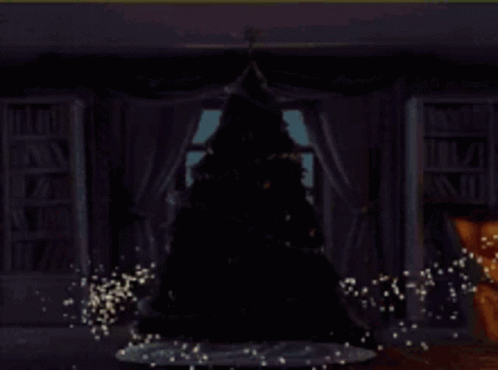 A festive Christmas tree adorned with lights and garlands, topped with a star, in a cozy room.