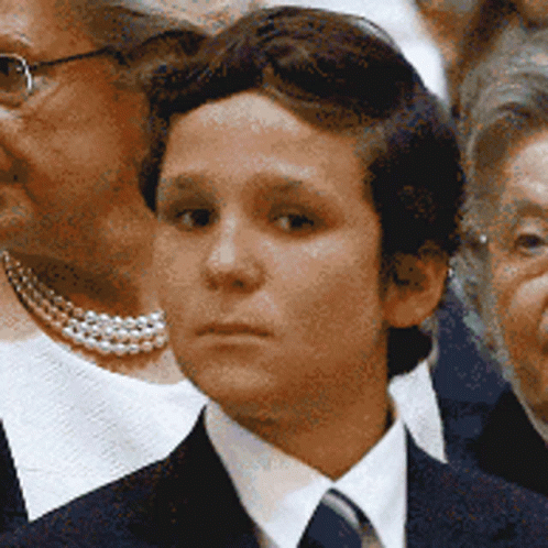 Froilan Bourbon, also known as Felipe De Marichalar Y Borbón, sitting in a suit and tie, staring intently in a crowd.