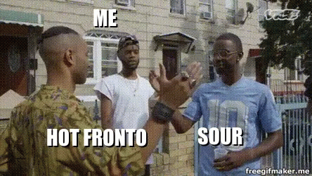 Men performing a 'dap' handshake, with labels 'Hot Fronto' and 'Sour' indicating a cultural exchange.