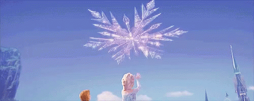 Elsa from Disney's Frozen creating a dazzling ice magic display in the sky, with another character visible.