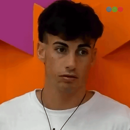 A young man from Gran Hermano Argentina displays a frustrated expression, wearing a white shirt and necklace.