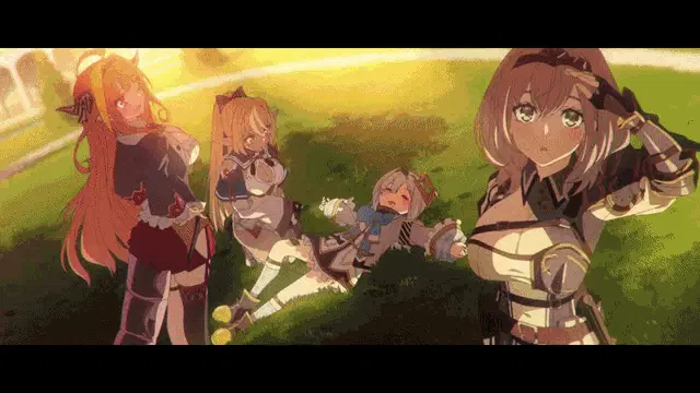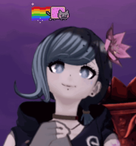 Fubuki Clockford from Master Detective Archives: Rain Code with the iconic Nyan Cat above her head.