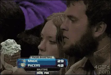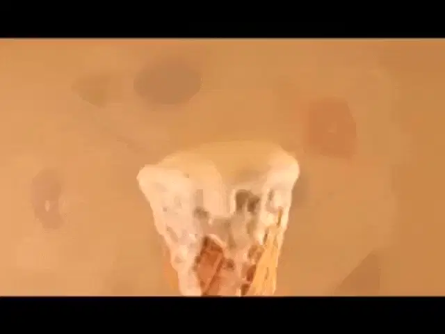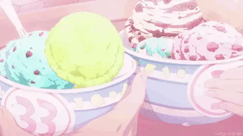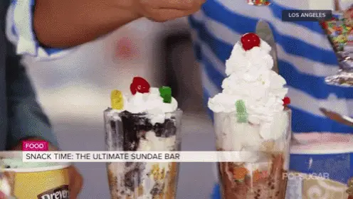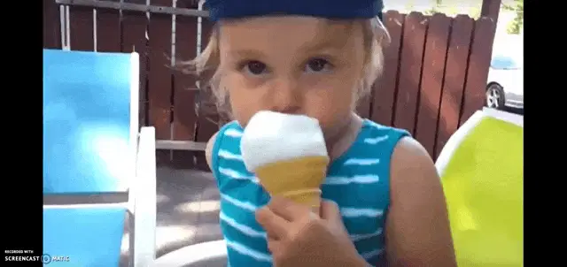Little girl from Fullhouse enjoying a messy ice cream sundae with a spoon, getting some on her face.