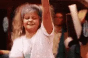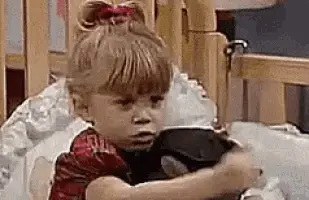 An Olsen twin from Full House shows a surprised and excited reaction, wearing a leopard print dress.