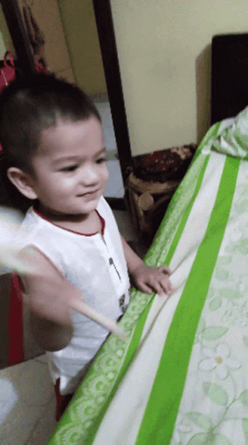 Fun Ehan, a cute little boy, happily playing with a stick.