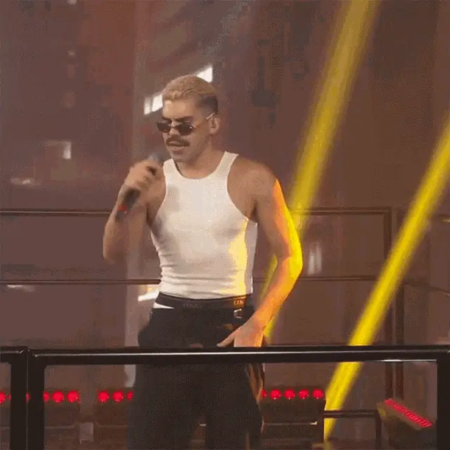 Omer's vibrant illustration of a person with a rainbow afro, reflective sunglasses, and colorful lips, embodying pride.