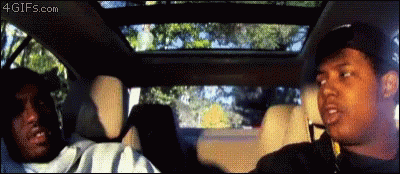 Two individuals, identified as funny cops, are seen interacting inside a car with a sunroof.