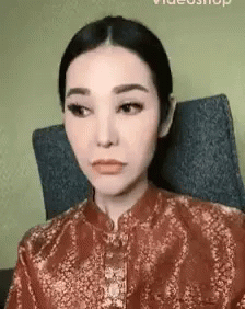 A woman makes exaggerated funny faces with a big eyes filter, showing various humorous expressions.