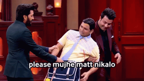 A distressed man pleads 'please don't remove me' on the set of the Indian comedy show 'Case Toh Banta Hai'.