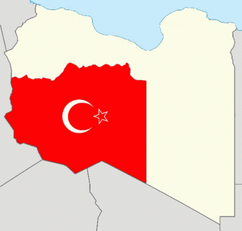 Map of Libya highlighting Fezzan and Tripoli regions, with the Turkish flag overlaid on a portion.
