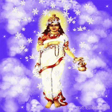 Goddess Brahmacharini, worshipped on the second day of Navratri, depicted in white with a rosary and lamp.