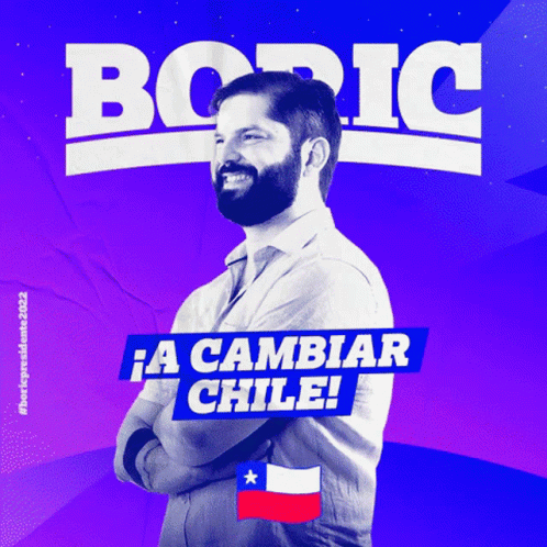 Gabriel Boric, presidential candidate, with the slogan '¡A Cambiar Chile!' (To Change Chile!) on a campaign poster.