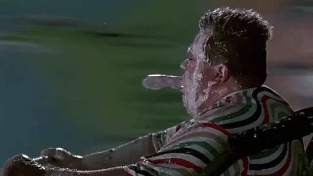 A woman reacts with disgust and gags while painting her toenails, presumably due to stinky feet.