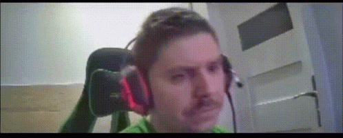 Gagri Dawid, a man with a mustache and headphones, reacts intensely, pulling at his hair in frustration.