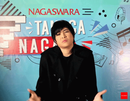Mita The Virgin shrugging with an indifferent expression in front of a Nagaswara sign.