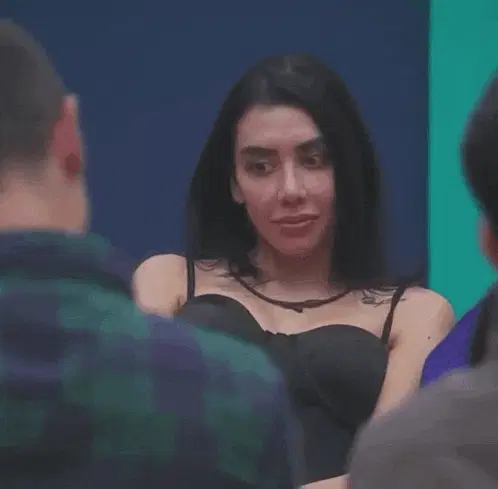 Gala Montes poses in a black dress on a yellow stage, showcasing a garment at an Lcdlfmx event.