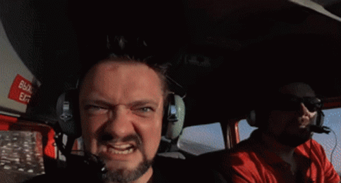 Alexander Pushnoi makes an exaggerated angry face in a helicopter cockpit, likely from the show Galileo.